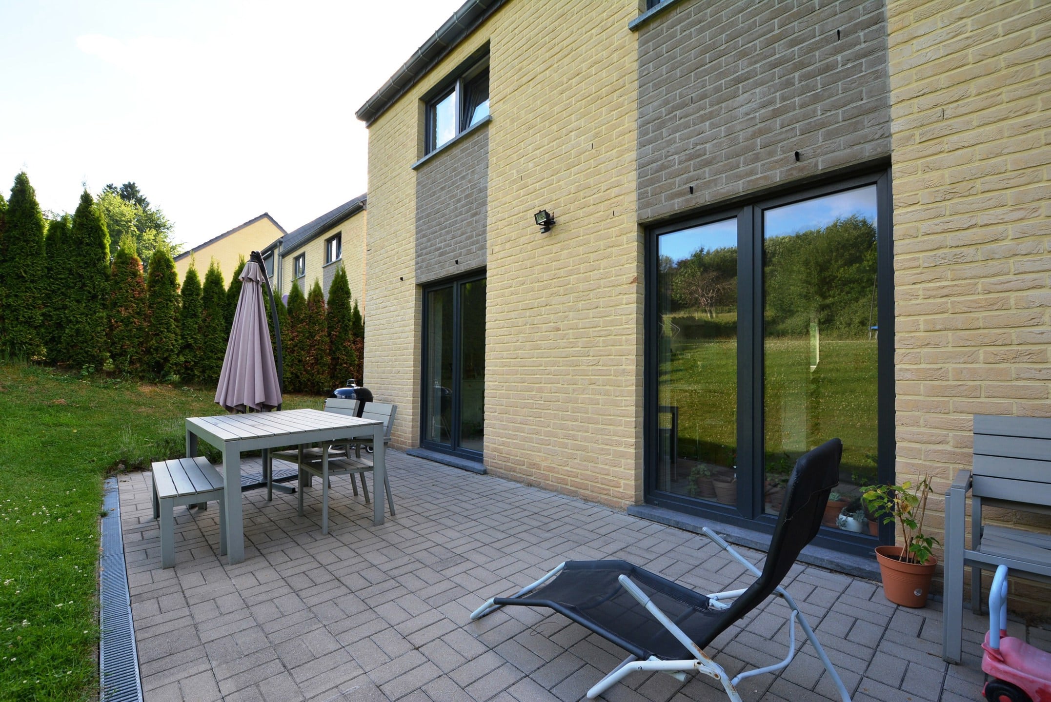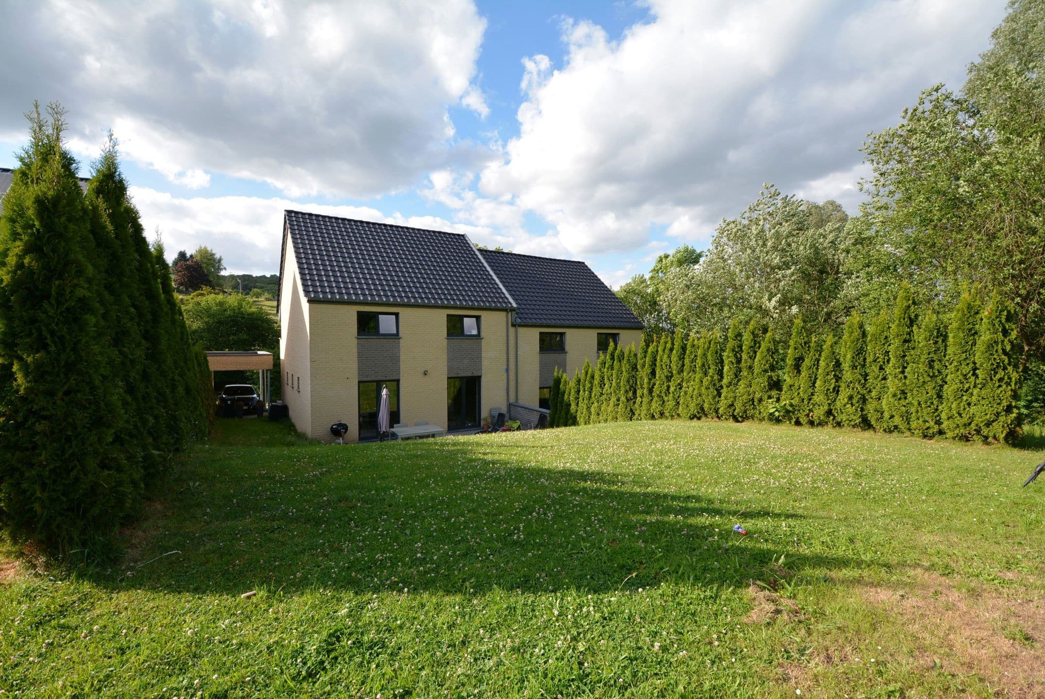Maison 3 façades récente avec jardin et garage